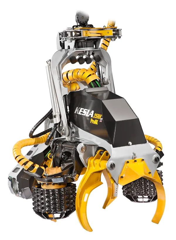 Харвестерные головки KESLA 25RH-II и 25RHS-II – универсальные головки для рубок ухода и главного пользования, когда средний диаметр ствола не превышает 40 см. Максимальное раскрытие головки составляет 58 см. За счет великолепной сбалансированности, а также геометрии вальцов и ножей, захват как стоящих, так и лежащих деревьев осуществляется просто и быстро. Эти головки великолепно справляются также с задачей очистки от сучьев и раскряжевки стрелеванных хлыстов.