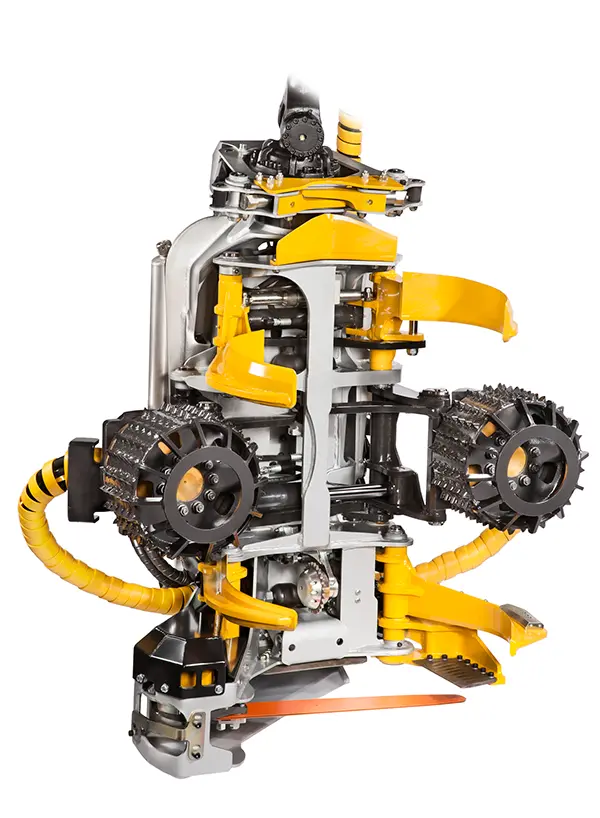 Превосходная эффективность харвестерных головок основана на уникальной синхронной системе подачи тройных роликов, которая обеспечивает подачу дерева без скольжения. Гидравлическая система первого класса и бесступенчатое управление мощностью сжатия обеспечивает высококлассную обработку древесины.