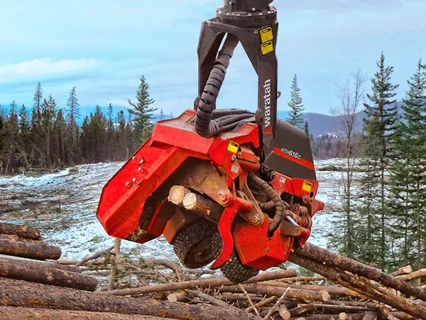 Легкая и многофункциональная харвестерная головка Waratah HTH616C идеально подходит для обработки мелкого леса на платформах, работы с машиной для вязки, а также для раскряжевки и обрезки сучьев непосредственно у пня.