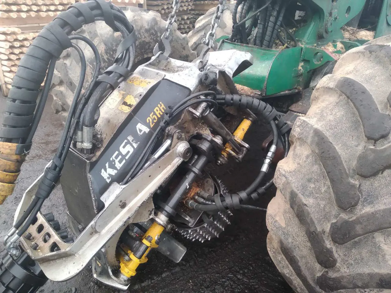 Колесный, повышенной проходимости харвестер со стелющимся манипулятором Kesla (длинна вылета стрелы до 9 метров) не смог нести службу из-за поломки. В процессе диагностики выяснилось что необходима замена насоса.