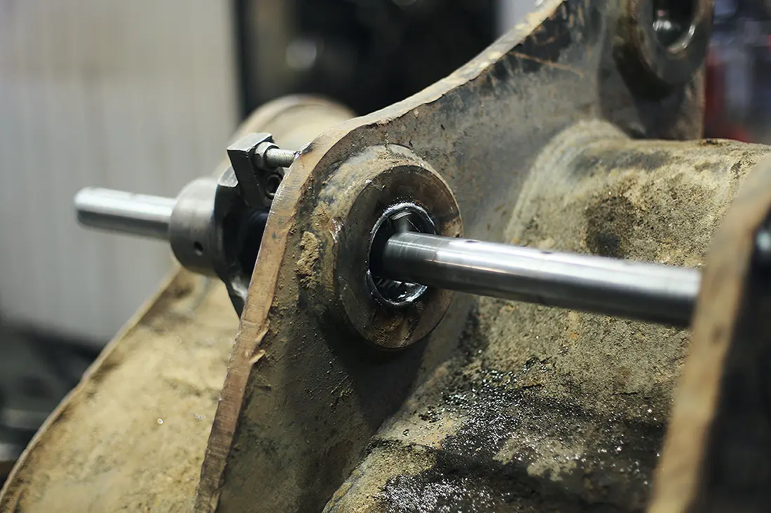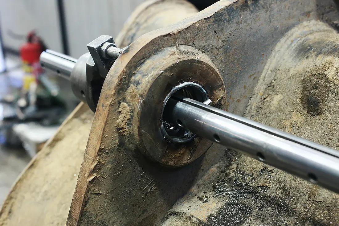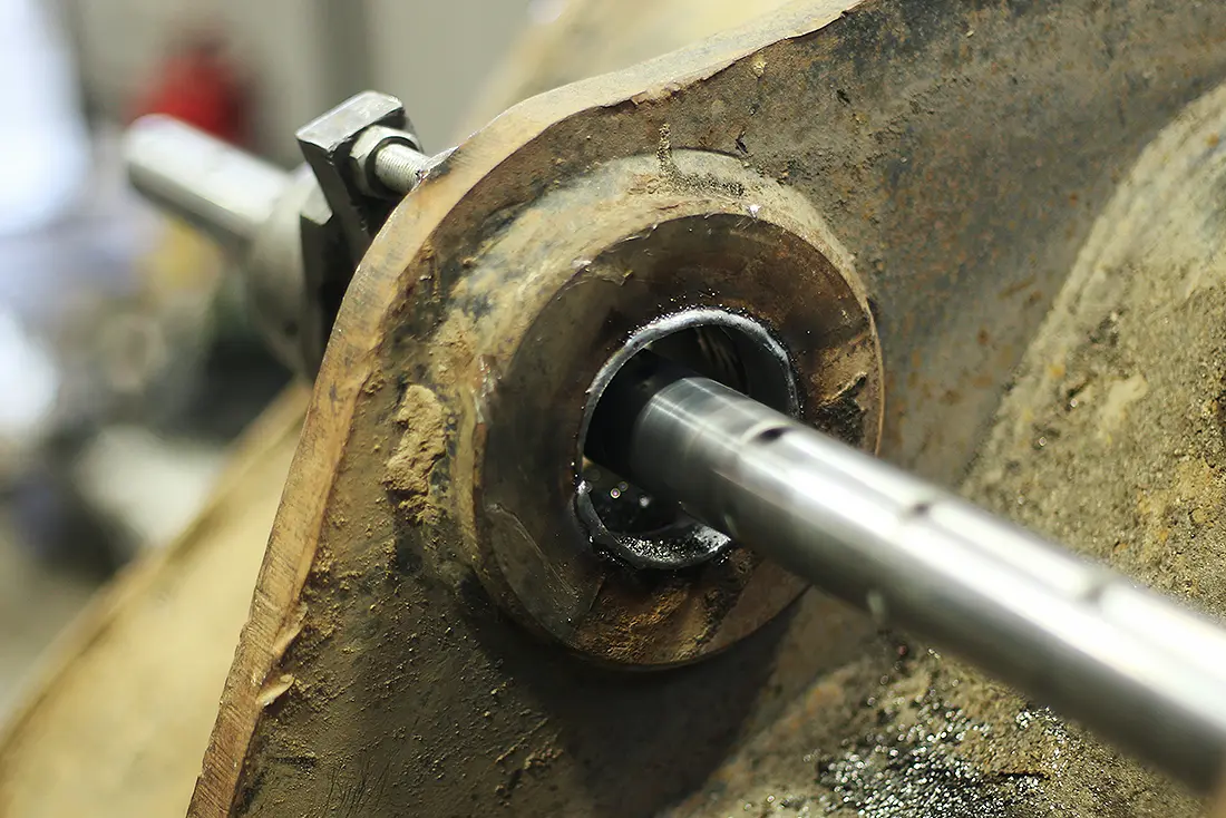 Из-за высокой степени износа проушины, перед расточкой необходимо произвести внутреннюю наплавку отверстия в диаметр больший номинального.