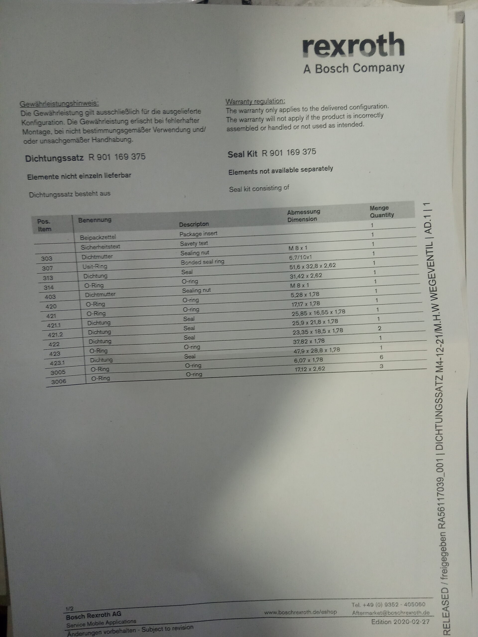 РТИ для секции управления вальцами протяжки Kesla. Включает уплотнения 21512739