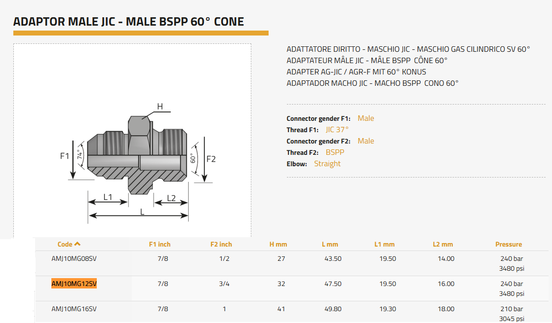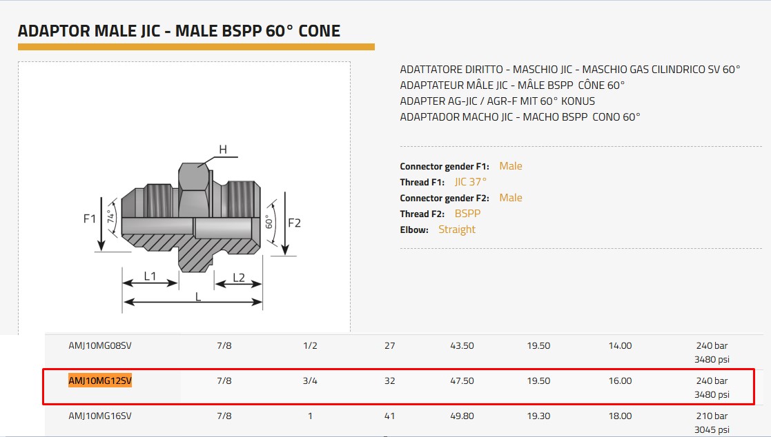 AMJ10MG12SV ADAPTER AG-JIC 7/8 / AGR-F 3/4 MIT 60° KONUS